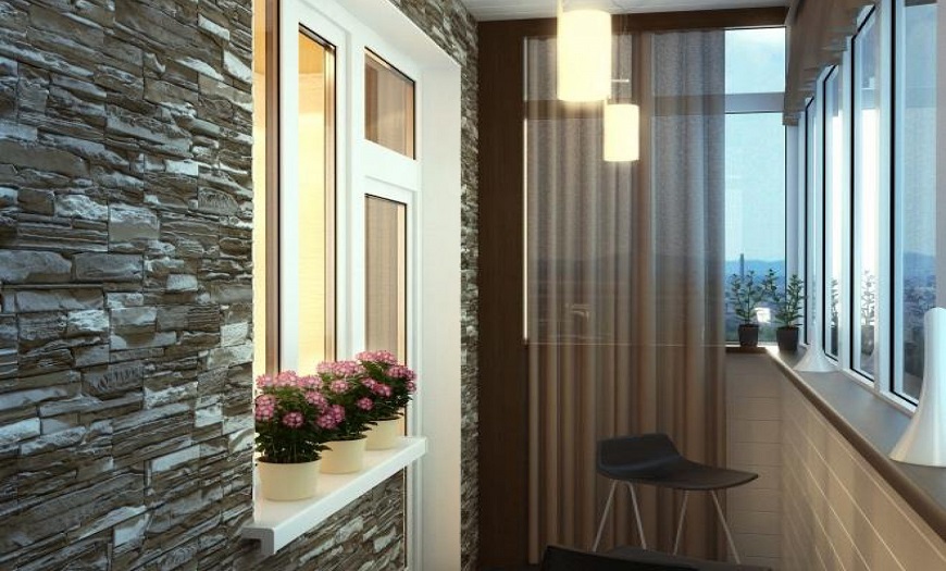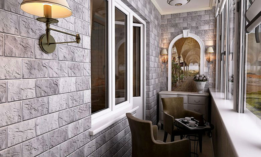 Искусственный камень активно применяется при обустройстве кухни, ванной, гостиной и конечно же балкона.