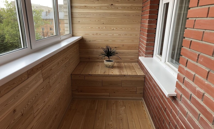 Если возник вопрос, чем лучше отделать стены на балконе, рекомендуется обратить внимание на этот вариант. Дерево используется для отделки балкона изнутри уже достаточно давно, поскольку отличается хорошими показателями звуко- и теплоизоляции, а также эстетическим внешним видом