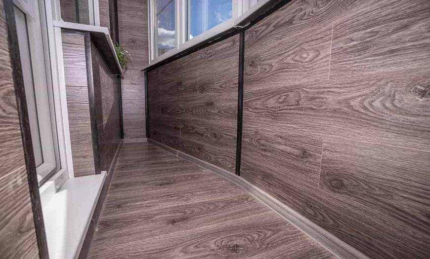 Подобный метод отделки применяется очень часто как в ремонте балконов, лоджий, так и в интерьере других помещений.