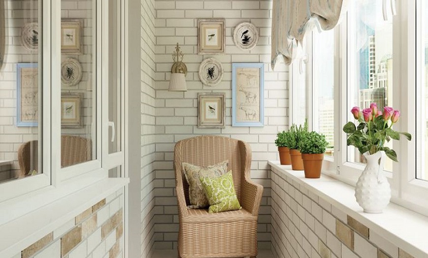 Когда одной из целей отделки балкона является приятный внешний вид используются более интересные материалы.