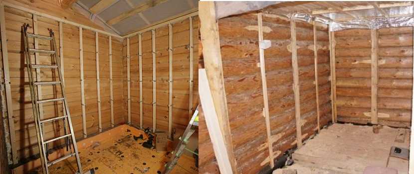 Приступать к отделке стенок в доме с применением этих материалов возможно, если усадка дома полностью завершилась. Для этих процедур внутри дома обязательно следует создавать специальные каркасы в комнатах, которые достаточно сильно уменьшают общее пространство в помещении.