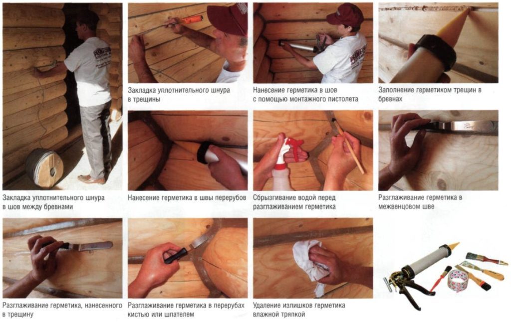 Точная скорость завершения усадки зависит от климатических особенностей местности. Сильное влияние оказывает влажность воздуха и средняя температура. Приступать к отделке внутренних стен из бруса и бревна разрешается только после их конопатки. Работы своими руками выполняются в два этапа: