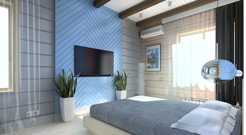 Естественная текстура дерева дополняет различные акценты. Экологически чистые материалы, способствуют здоровому сну и комфортному отдыху. Обязательным атрибутом спальни является кровать, шкаф и комод. Интерьер может быть оснащен подвесным креслом или бескаркасной мебелью.