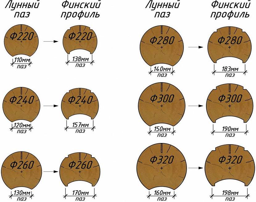 Для возведения стен в основном используются оцилиндрованные бревна диаметром от 160 до 320 мм с учетом площади дома, при существовании прямой зависимости, чем больше дом, тем бревна должны быть большего диаметра.