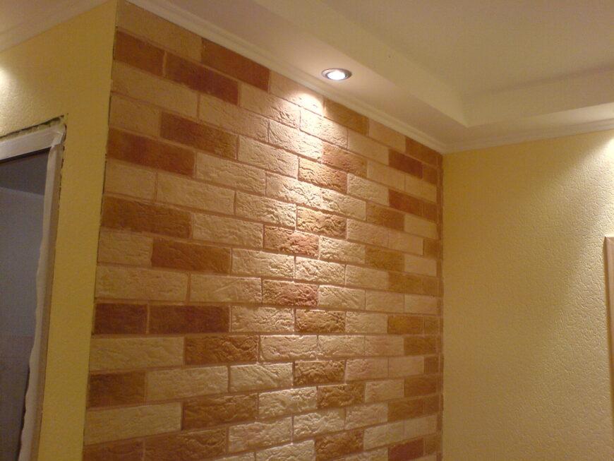 Для создания кирпичной стены внутри дома используются элементы из разных материалов — начиная от бумаги и заканчивая камнем. Под имитацию кирпича стена готовится точно так же, как и под любую другую финишную отделку.