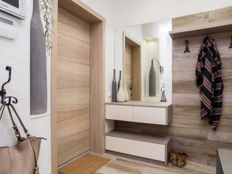 Если есть ниши, их обязательно нужно задействовать — монтировать шкаф-купе внутрь или установить неглубокие полочки. Наверху можно хранить шарфы, шапки и перчатки, а нижний ярус оставить для обуви и зонтов.