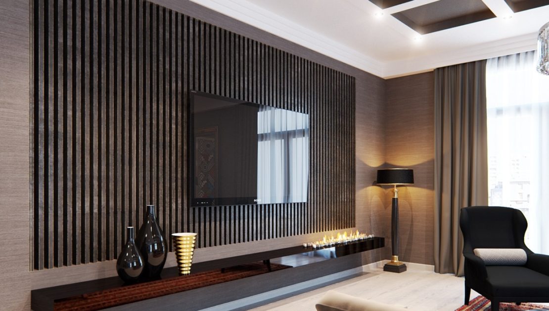 Грамотно спланированное освещение в комнате искусно подчеркнет рифленую фактуру панели. А мягкая подсветка реек у потолка привнесет романтики в оформление.