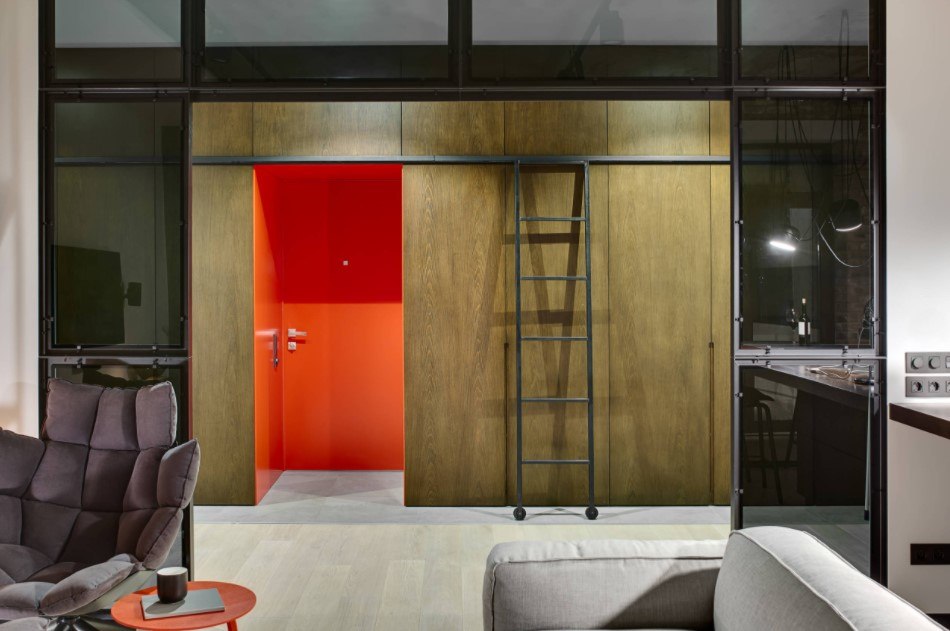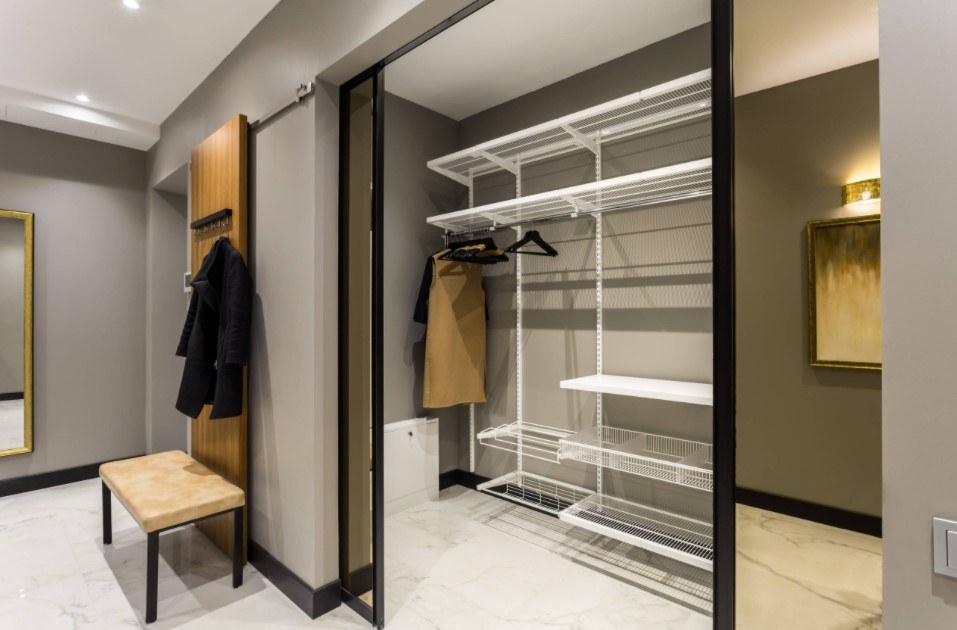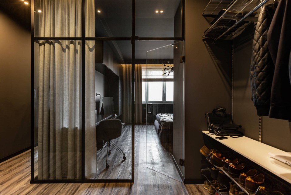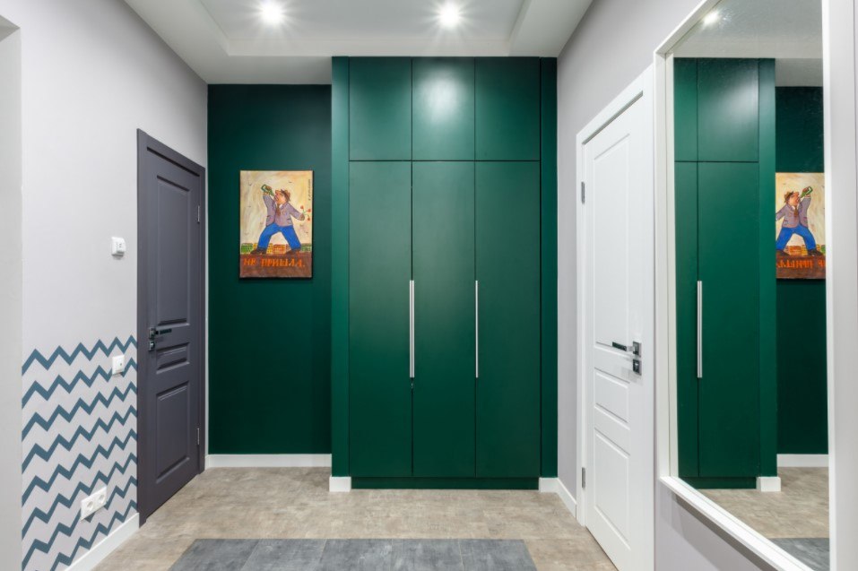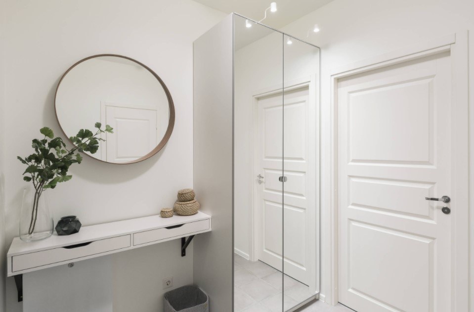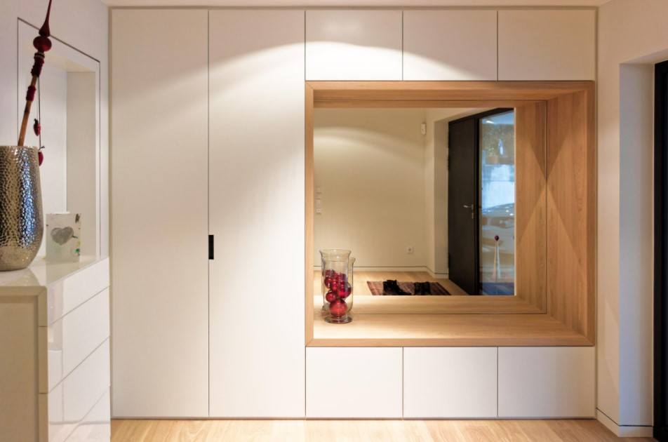 Если планировка прихожей позволяет разместить зеркальный шкаф-купе прямо напротив входной двери, обязательно используйте такую возможность.