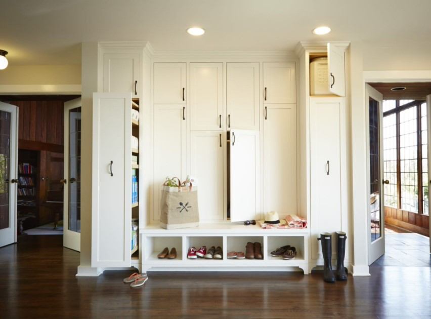 В прихожей должно быть много места для хранения различных предметов. При входе в помещение с улицы сразу же попадает множество грязи, пыли, иногда влаги.