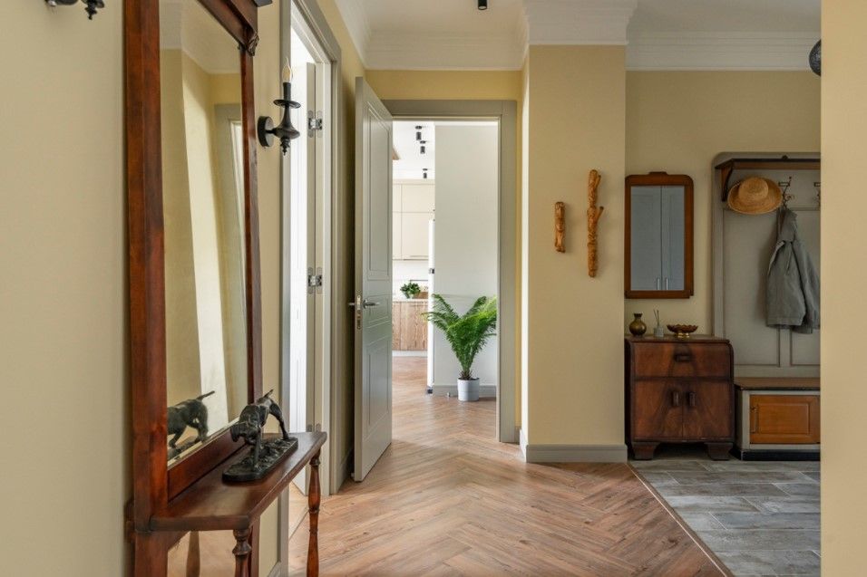 - стены в прихожей рекомендовано оформлять в теплых тонах с использованием натуральных деталей. Это визуально расширит пространство и сделает комнату уютной;