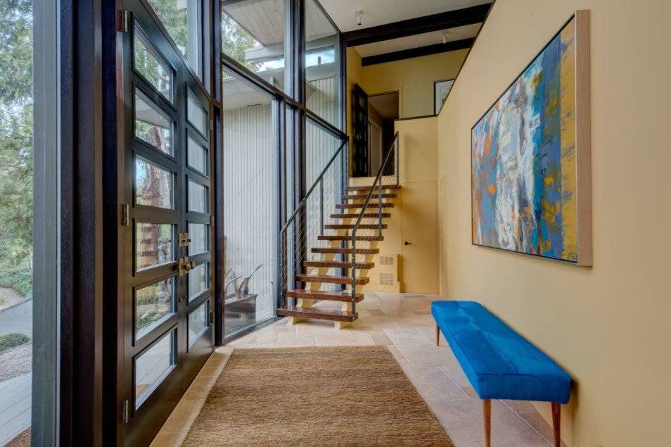 Прихожая с камином и зоной отдыхаИсточник roomester.ru