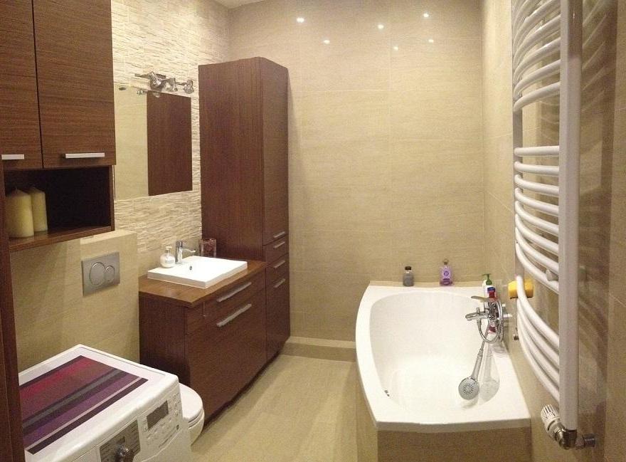Из минусов данного вида отделки ванной отметим лишь повышенные требования к качеству базовой поверхности. Если присутствуют неровности, то ничего не попишешь: придется устранять. Впрочем, можно рассмотреть и такой вариант: обшить стену листами гкл, а в качестве финальной отделки использовать линолеум.