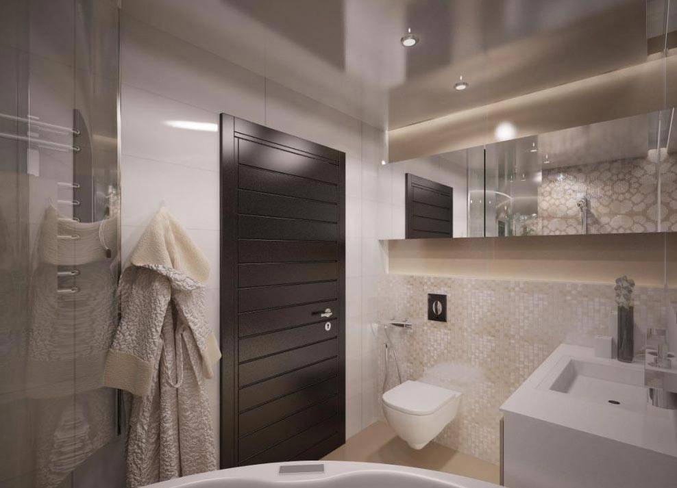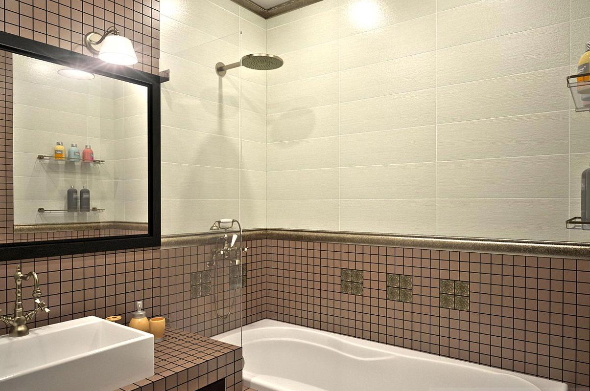 При реализации проекта можно воспользоваться готовыми идеями дизайна интерьера. Оригинально выглядит комбинирование 3 типов плит при отделке поверхностей, используются блоки прямоугольные средних габаритов, квадратные элементы и мозаичная кладка. Оттенки должны соответствовать выбранному стилю и тональности гаммы. При реализации схем необходимо учитывать комплектацию ванной.