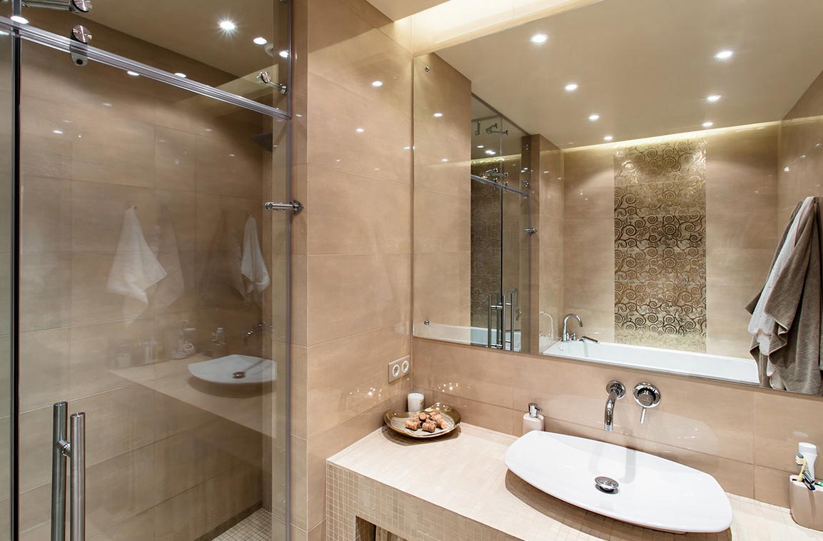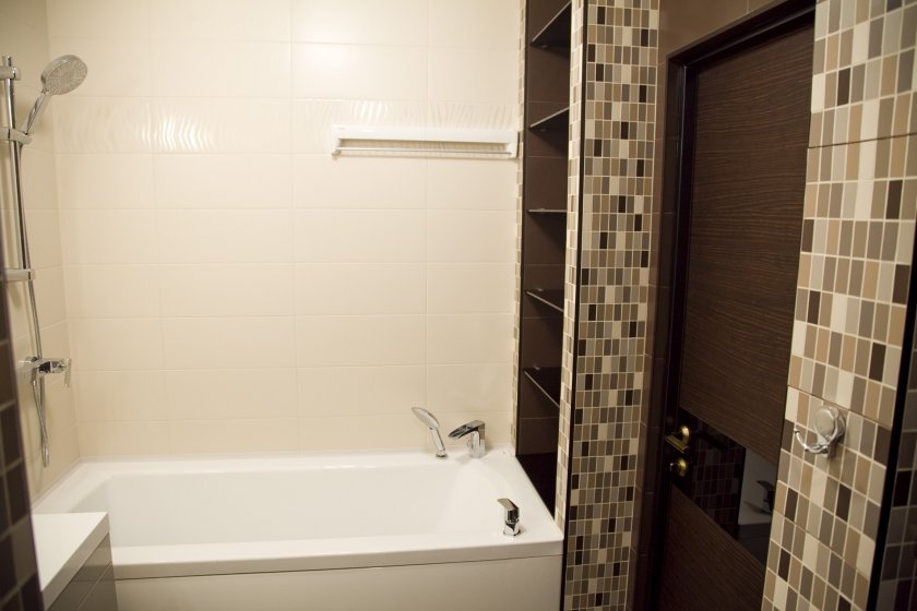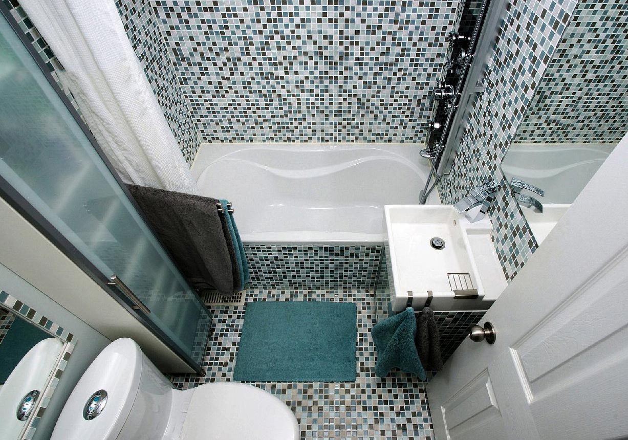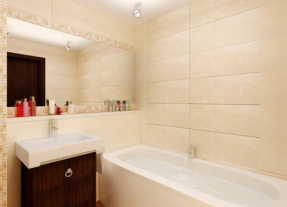 Какого размера должна быть плитка для небольшой ванной комнаты зависит от формы помещения.Узкое помещение ванной комнаты, возможно расширить.