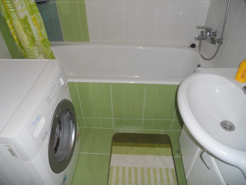 Гоните от себя любые мысли о пано и цветочках, об улучшении или исправлении «слишком простого» интерьера ванной комнаты дополнительной отделкой. Хорошие примеры можно посмотреть в материале про совмещенный санузел 4 кв.м со стиральной машиной, т.к. там загрузка предметами максимальная и любая сложная отделка сделает только хуже.