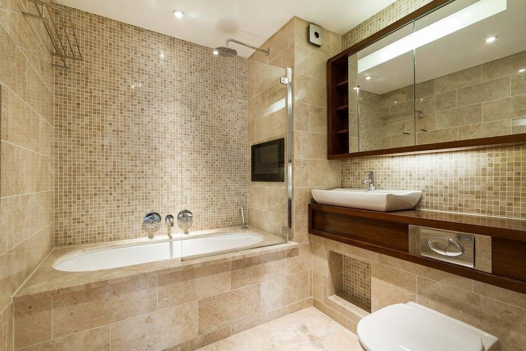 Основными достоинствами отделки ванной комнаты плиткой являются: