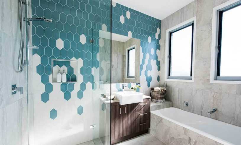 Стекло бывает разной толщины, прозрачности, узоров и цветов. В первую очередь, в ванной комнате используется закаленное, клееное или армированное безопасное стекло. При ударе такой материал разбивается на куски с размытыми краями, брызгами или просто сетью трещин на листе. Популярны бочки и блоки. Они бывают разных размеров и форм: квадратные, треугольные, закругленные. На стену укладывается стеклянная облицовка, которая может быть выполнена в виде больших панелей или плитки со стандартными керамическими элементами — квадратами и прямоугольниками различных размеров и мозаикой.