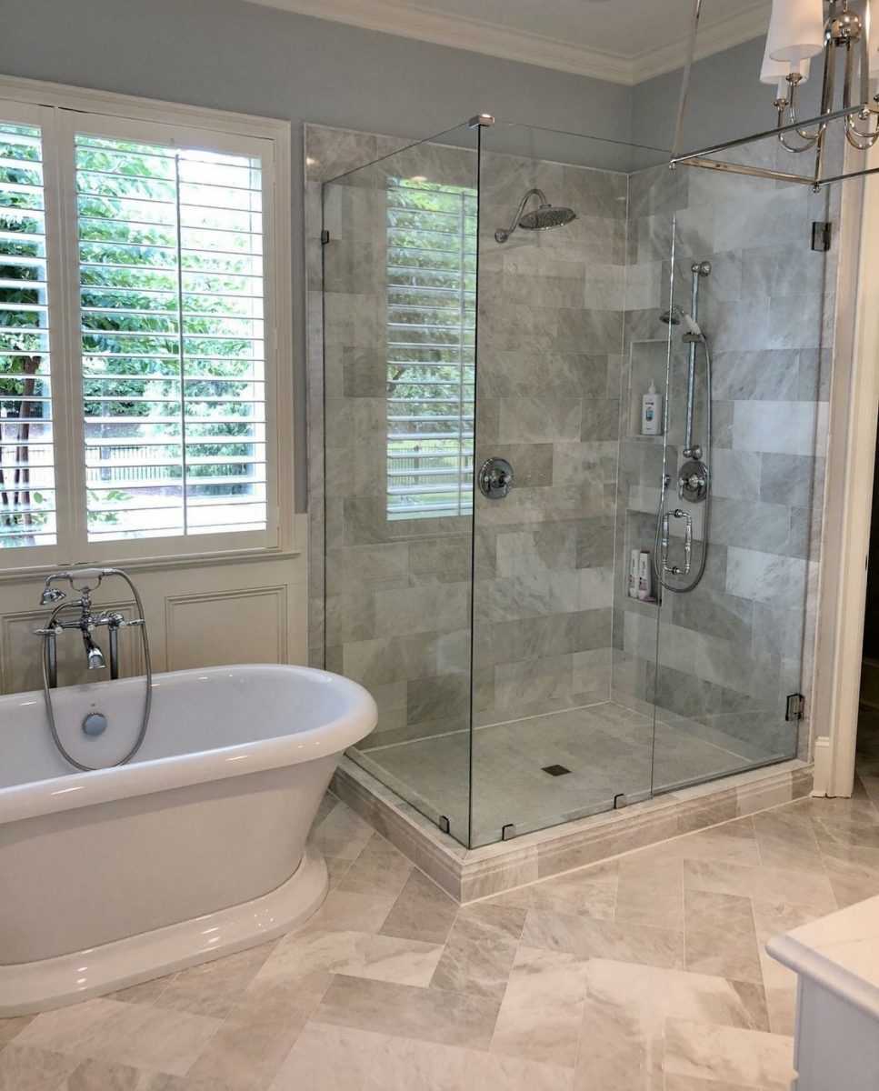 Когда хозяева решили обустроить в ванной полноценный просторный душ, дизайнеры рекомендуют не покупать специализированную кабину, а огородить территорию приема водных процедур стеклянной ширмой.
