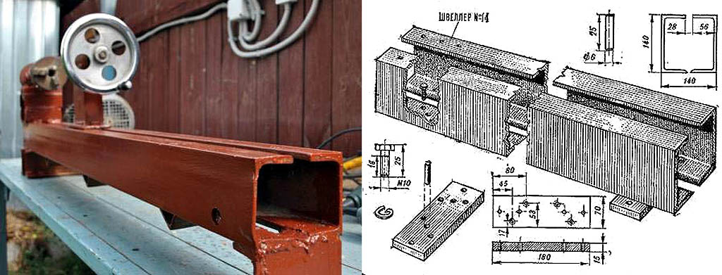 Чертежи токарного станка по дереву с металлической станиной из сдвоенных труб