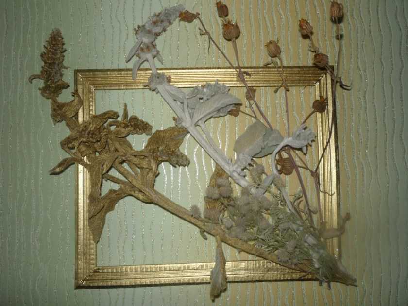 Сухоцветы, например бархатцы, астры, розы или маки, отлично сохраняющие свою природную форму после высыхания, довольно часто используются для создания декоративных панно, которые способны придать комнате определенной образности.