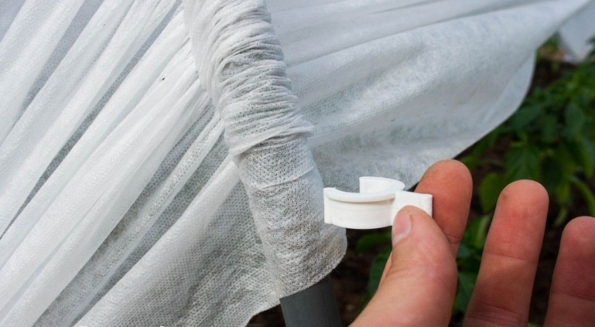 Закрепить укрывной материал на парнике можно, используя канцелярские биндеры, двусторонний скотч или фиксаторы для труб