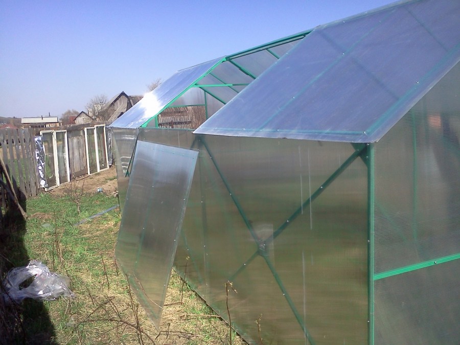 По сравнению со стеклянной теплицей, поликарбонат рассеивает солнечные лучи, поэтому растения не получают солнечных ожогов.