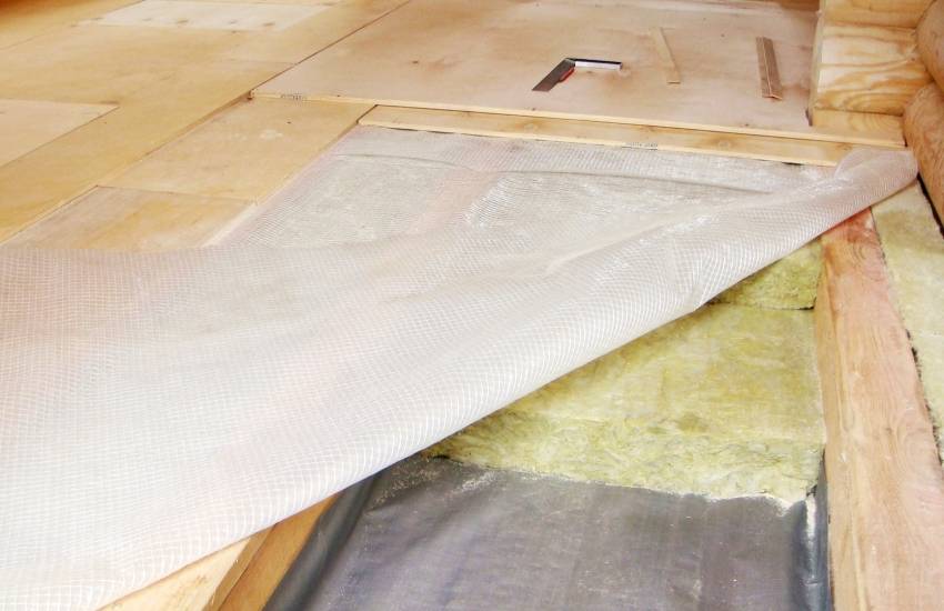 Обязательно требуется укладка пароизоляционного слоя, в особенности, если грунтовые уровни располагаются в непосредственной близости к поверхности. Пароизоляция должна накрывать всю поверхность, включая лаги. Если грунтовые воды располагаются высоко, то лучше всего подойдет пергамин или рубероид, а для низкого уровня грунтовых вод – пароизоляционная мембрана.