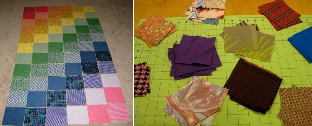 Эта техника предполагает пошив одеяла из лоскутов, сшитых в квадраты одинаковых размеров. Изготовление такого одеяла не составит особого труда, но ручное сшивание деталей потребует большого количества времени, поэтому для экономии усилий лучше использовать швейную машинку.
