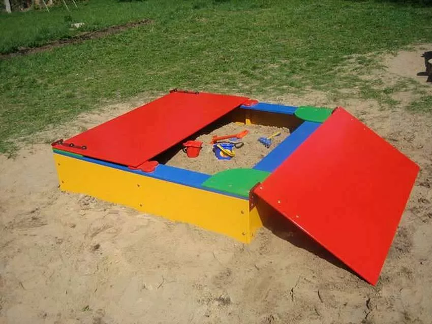 Если вы не хотите возиться с изготовлением, а решили купить детскую песочницу, лучше приобрести изделие с крышкой. Она будет служить не только защитой от дождя, но и котов, которые могут устроить себе в песке туалет.