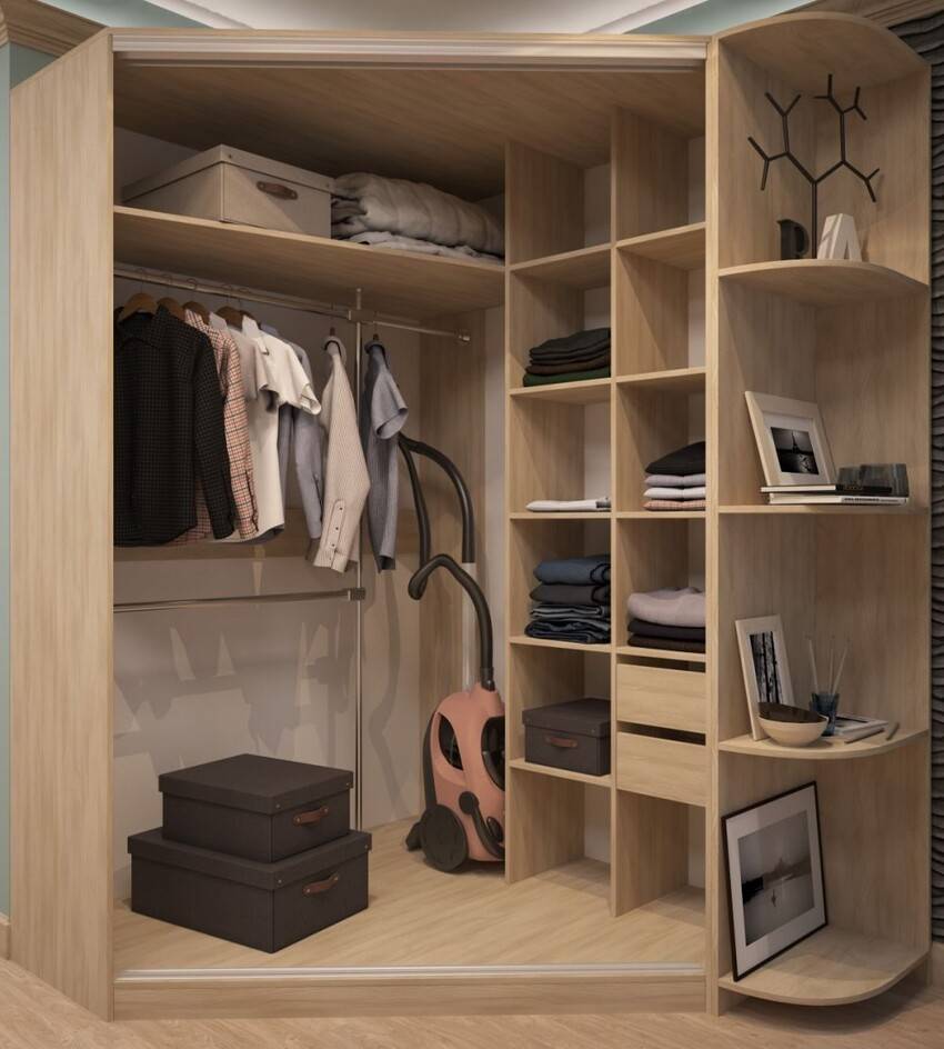 - в шкафу-купе – вместительные конструкции подойдут для организации хранения всех нужных вещей, их дополняют полками, коробками;