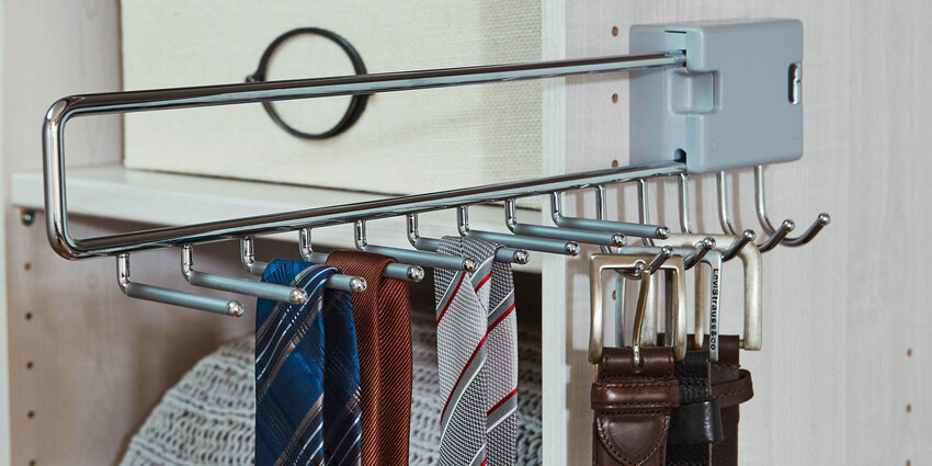 Чтобы хранить мелкие предметы вроде галстуков и ремней, можно использовать обычные крючки, крепящиеся на стену.