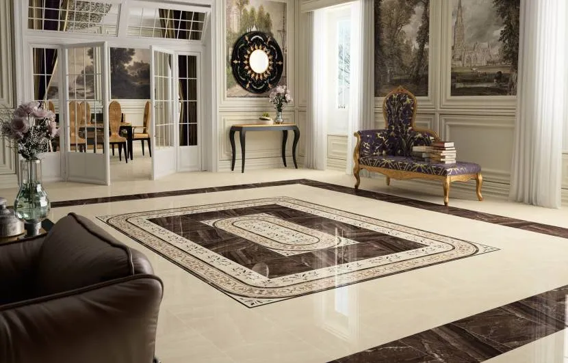 Варианты оформления пола в интерьере гостиной при помощи плитки