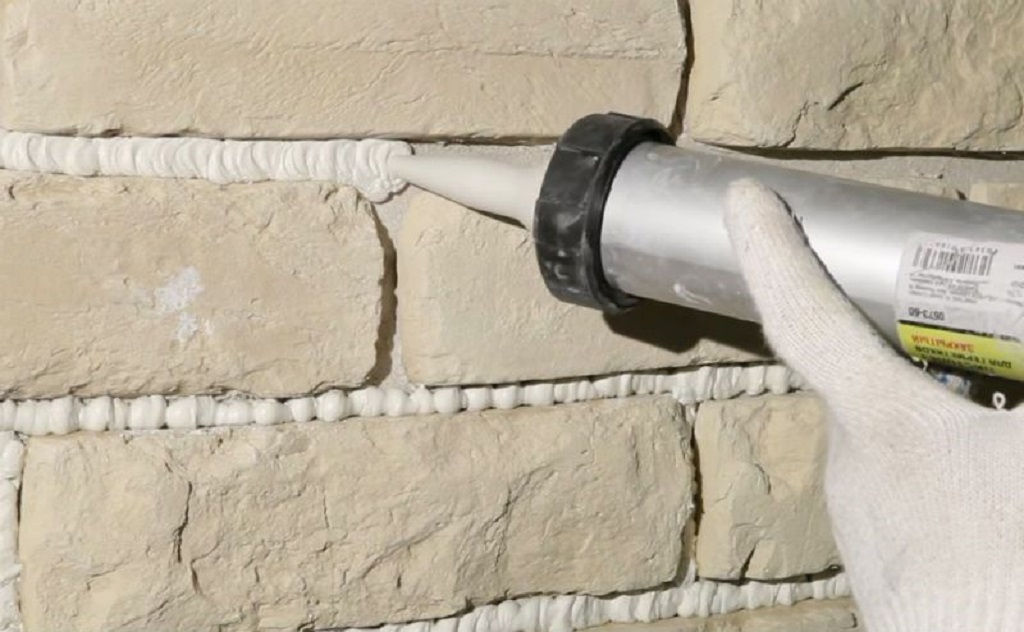 заполнить мелкие швы. Или строительным пистолетом, если выполнялась облицовка