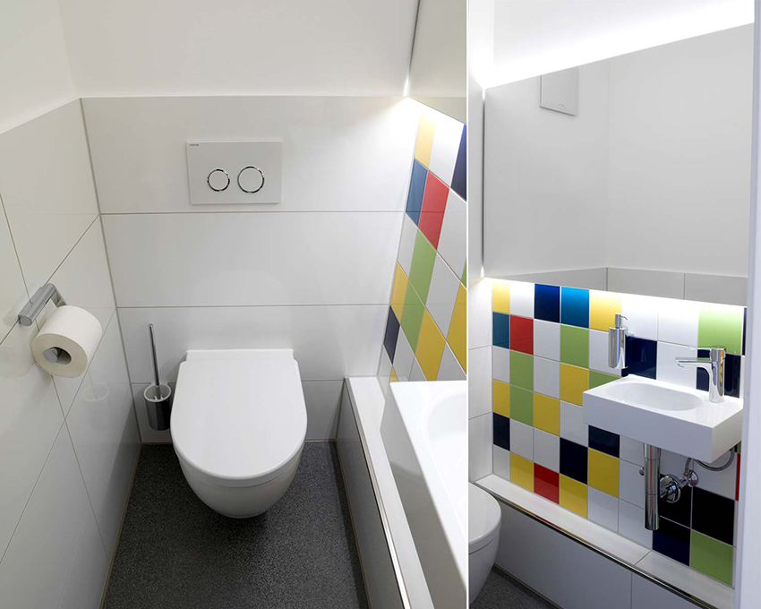 При подборе цветовой гаммы помещения учитываются габариты, стилевое направление, расположение сантехнического оборудования.