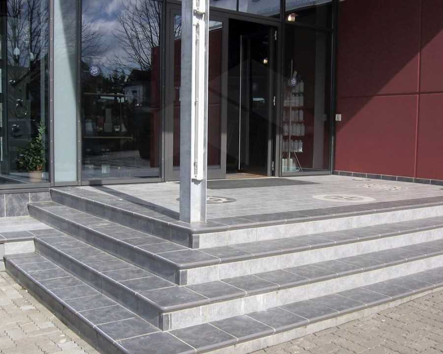 Каменная плитка для ступеней внешне выглядит солидно, дорого и надежно. Для выдержки дизайнерского проекта в гармоничном сочетании с отделочными материалами самого строения, такой аналог подойдет наилучшим образом. Природных материалов для производства каменной плитки, сегодня предостаточно. Наиболее популярными считаться модели из мрамора, гранита, порфира, базальта, диабаза и природный песчаник. Необходимо учитывать тот факт, что структура природного камня неодинакова. Для отделки порога целесообразно подобрать аналог с наиболее прочными и плотными характеристиками структуры. Механические воздействия и воздействие факторов внешней среды менее всего страшны граниту. Утонченный мрамор со своими высоко эстетическими параметрами хорош в отделке поверхностей с умеренным уровнем нагрузок. Перед входом такой материал не оправдает возложенных надежд. Со временем на его поверхности появятся отчетливые царапины; Клинкерная плитка. Производится при помощи экструзии. Подготовленной глину высочайшего качества с примесями натуральных красителей прогоняют через специальный инструмент — экструдер. Полученную массу прессуют при помощи вакуумного пресса и подвергают обжигу при сверхвысоких температурах. При этом плитка приобретает особенно прочную уплотненную основу и отличается низкими характеристиками пористости. Проникновение влаги при таких показателях минимизируется до нуля, а значит плитка не пострадает под проливными дождями. Материал на высшем уровне устойчив к самым неблагоприятным климатическим перепадам. Наличие шероховатой поверхности защищает от скольжения, его легко мыть и чистить. Лед и снег убирается даже металлическими инструментами, без опасений деформировать или разбить покрытие.