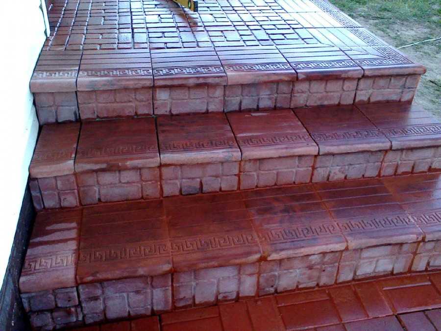 Если выберете для облицовки крыльца обычный материал, который использовали для укладки дорожек, то плитку лучше окрасить. Это повысит ее влагостойкость, но обновлять покраску придется раз в два года.