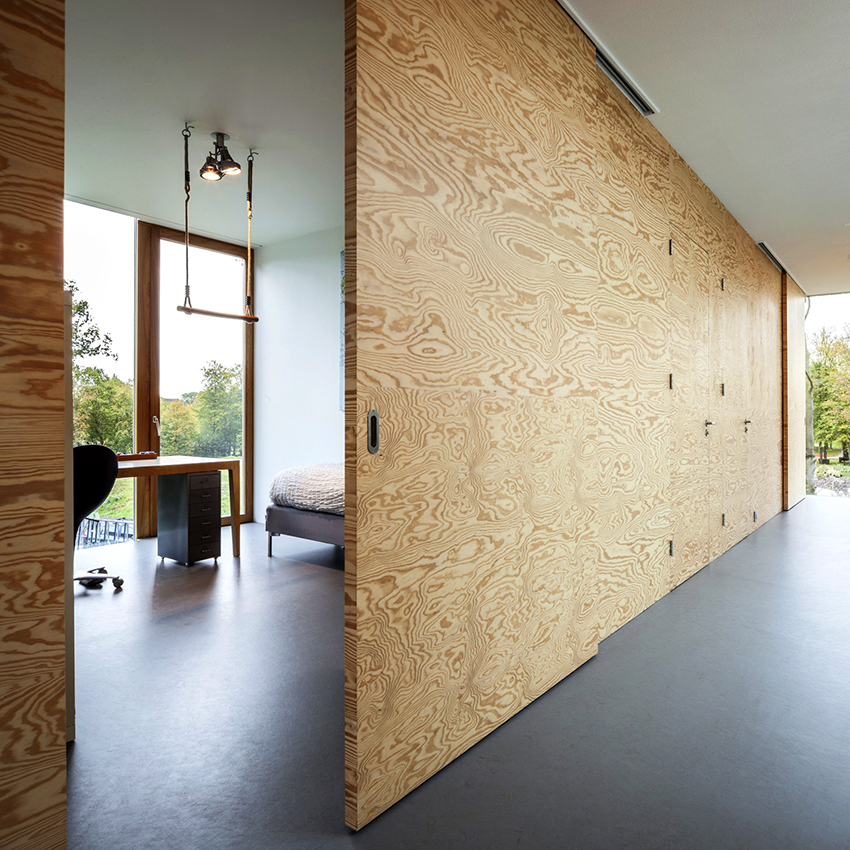 2. Дверь-купе, которую можно отодвигать в одну или обе стороны, а также прятать в стену.
