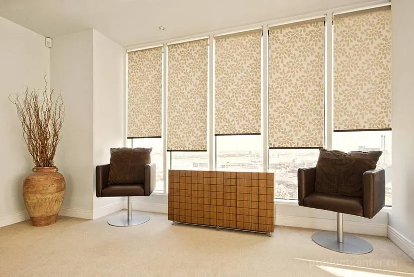 Рулонный материал как бы исчезает в кассете. Панели отличаются способом установки и закрепляются к самой створке на окне. Конструкция держит коробку с направляющими. Установка производится на каждую створку окна отдельно. Они не прячут сам подоконник и способны рассеивать лучи солнца по всему помещению.
