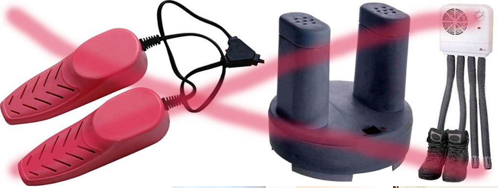 Промокшую обувь нужно высушить, прежде чем ставить в обувницу или хранилище. Но – не покупайте домой электросушилки для обуви (см. на рис.)! Их назначение – быстрая сушка рабочей обуви в командировочных, полевых или экспедиционных условиях, когда нужно на смену заступить или, скажем, выйти на измерения минута в минуту, а стоимость рабочей обуви заранее вписана в смету или текущие расходы.