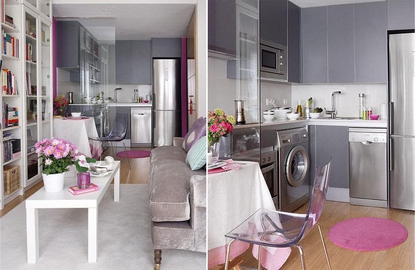 Сочетания: серый сочетается со всеми цветами радуги, но особенно хорош с белым (серые стены с белыми плинтусами выглядят сногсшибательно), розовым, желтым.