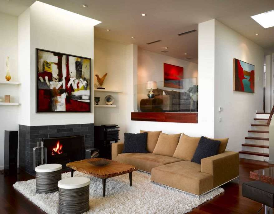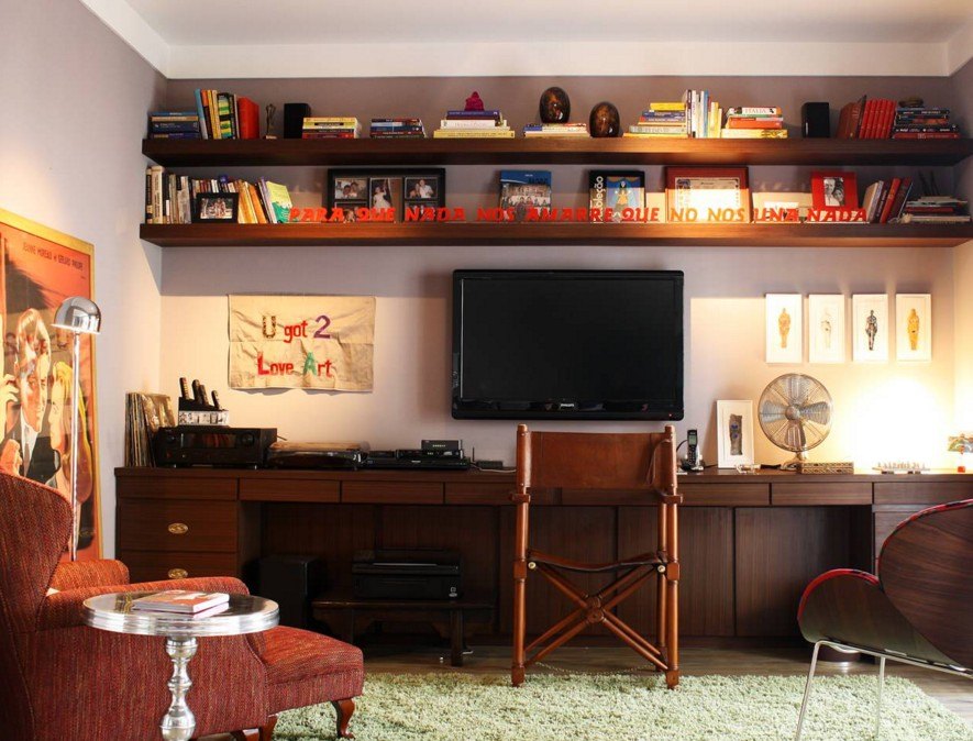 Навесные варианты совместимы со многими стилями помещений любых габаритов. В гостиной, будучи даже самыми маленькими по размеру, они связывают и объединяют детали интерьера. Настенные или иные композиции из них могут служить цели зонирования.