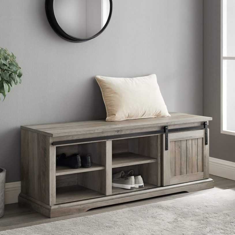 Если вы хотите разместить полки для хранения обуви в гостиной, то вероятно выберите модель с дверцами, которые открываются наружу. Когда дверь закрыта, ваша зона хранения обуви может выглядеть так же, как банкетка или скамья, и ее можно использовать как дополнительное место для сидения. Никто даже не догадается, что за клад там скрывается внутри.