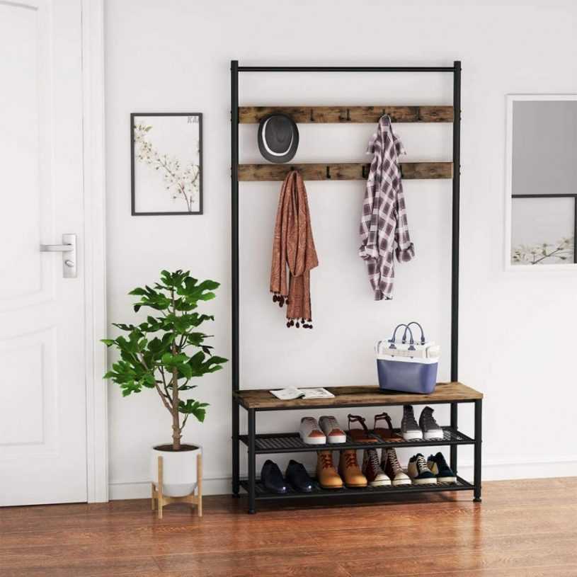 Подберите к вешалке обувницу или банкетку с сиденьем, выполненные в едином стиле.