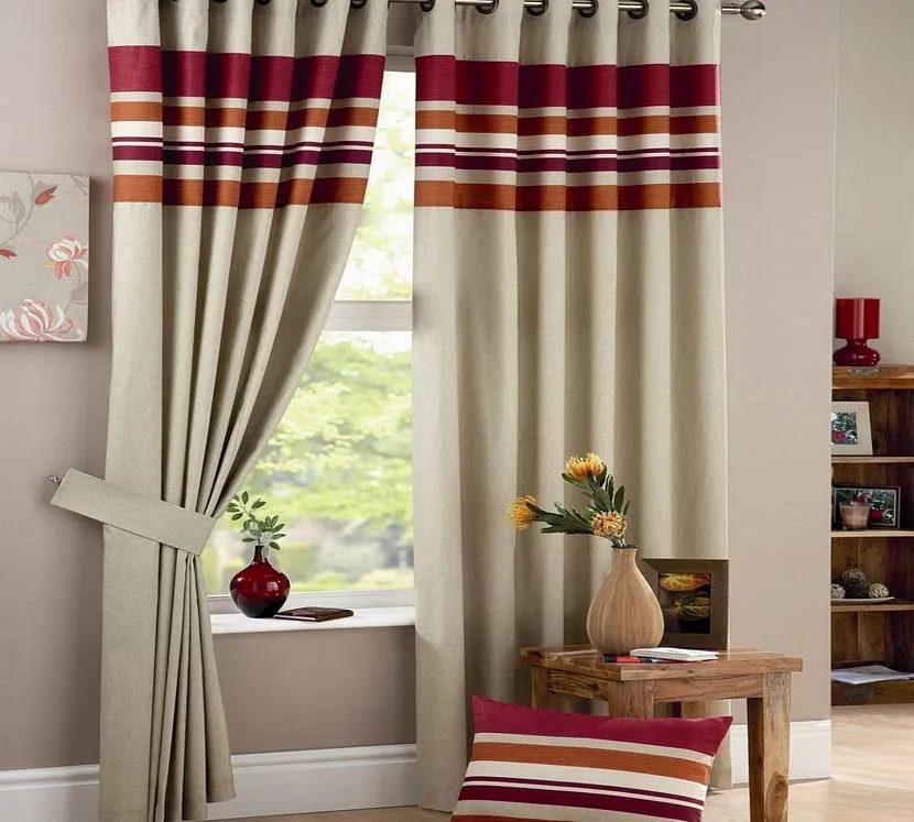 - Пропорции помещения. Узкую комнату визуально расширить помогают занавески с поперечными полосами. Для низкого потолка выбираются полотна с вертикальным узором;