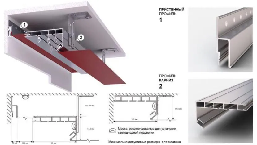 Какую гардину (карниз) закрепить на натяжном потолке: