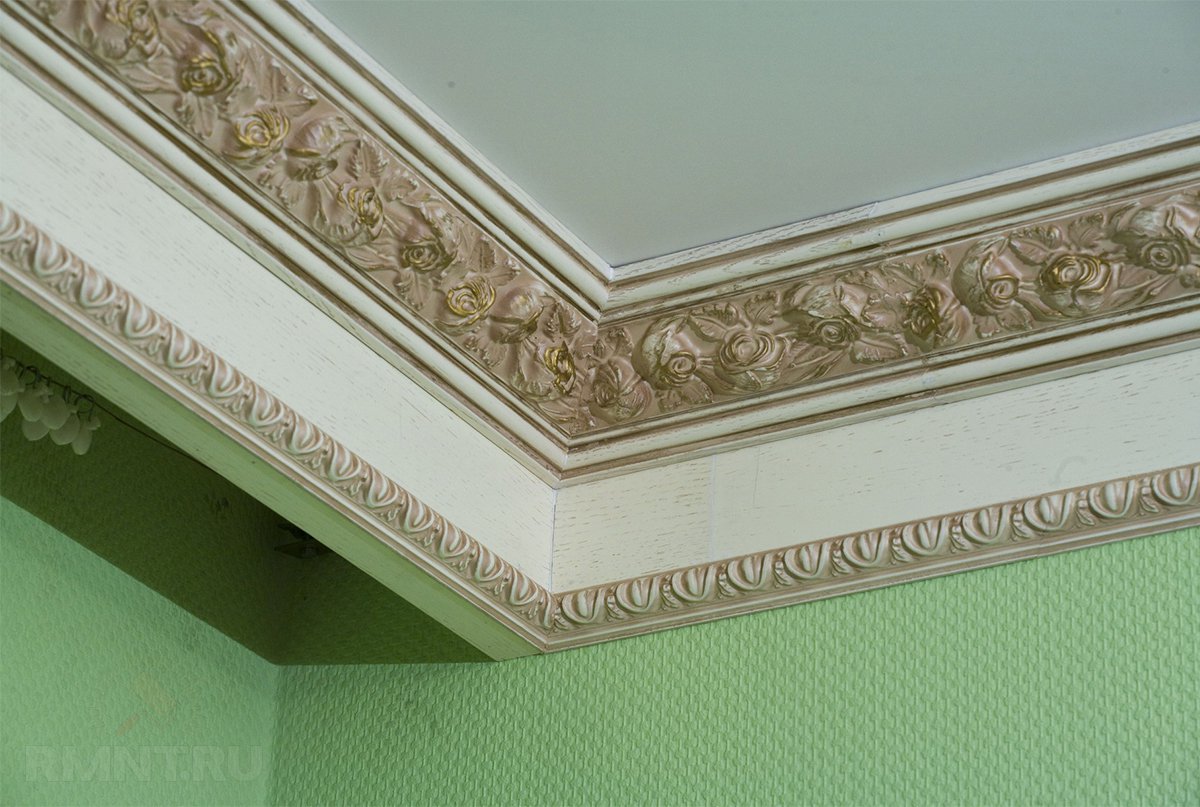 Совет: выбор обрамления для потолка следует осуществлять продуманно, учитывая площадь помещения, высоту комнаты, ее функциональное назначение.