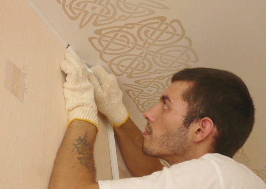 Полотно будущего потолка натягивается на предварительно установленный алюминиевый каркас. Когда работа завершена, между стенами и потолком остаётся технологический зазор. Его толщина может колебаться в диапазоне от 5-8 до 10-15 мм.