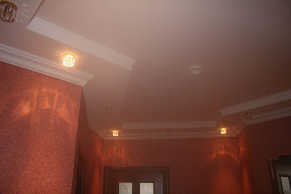 В узких слабо освещенных коридорах рекомендуется не использовать слишком тонкий багет. Неширокая полоса оформления стыка будет создавать эффект еще более узкого несбалансированного пространства. Для уравновешивания пропорций можно выбрать багет шириной в 6 или 7 см.