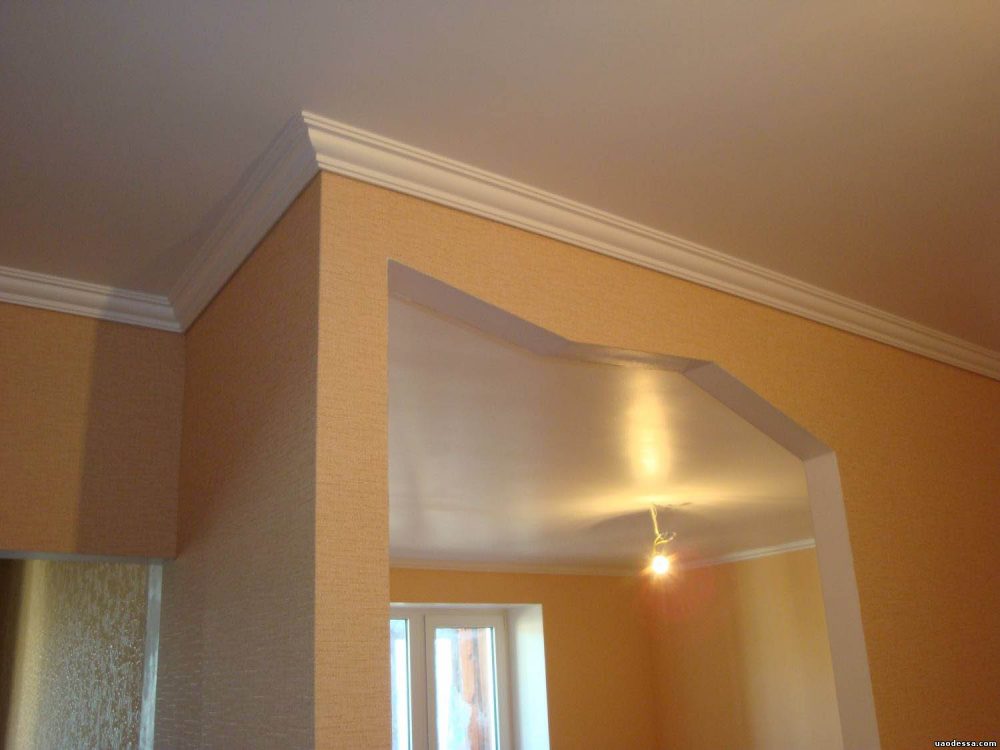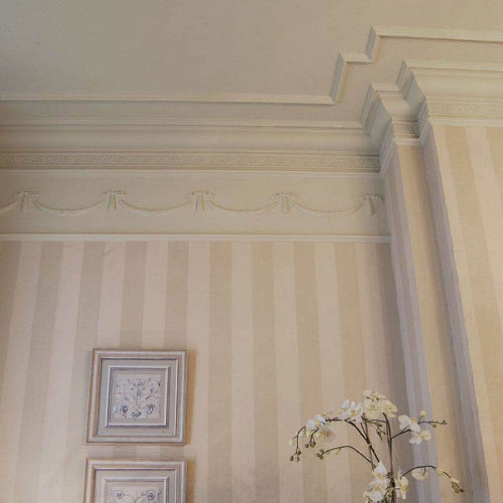 Невысокие потолки в маленькой комнате оформляют обычно узкими плинтусами, без массивных элементов. Для комнат высотой 2,5 м подходят галтели до 4 см шириной. В комнатах побольше можно использовать галтели шириной 5-6 см.