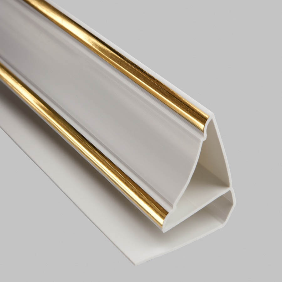 Из поливинилхлорида делают не только самые популярные напольные плинтуса, но и потолочные галтели. К главным преимуществам относятся: